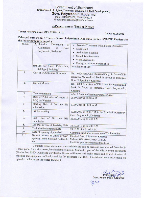 (HIGHER TECHNICAL EDUCATIONAL AND SKILL DEVELOPMENT DEPARTMENT, GOVT. OF JHARKHAND)