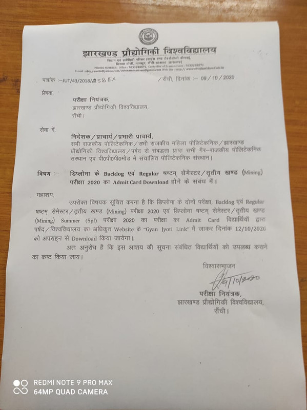 notice about downloading admit card of 6th sem./3rd yr. Diploma Exam-20 (backlog/regular)